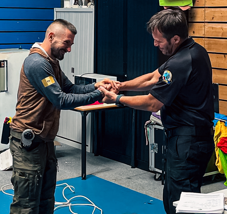 À l’issue de ce stage très éprouvant, un test de 40 questions nous est adressé ainsi qu’une évaluation pratique sous forme de scénario d’opposition où nous devions restituer les techniques professionnelles.